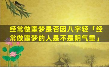 八字命理论中并 🦢 没有八字“轻”的说法,因 🌺 此 🐦 经常做噩梦与八字轻之间没有直接联系。