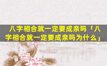 八字 🌾 相合并不一定 🐝 意味着 🐬 必须成亲。