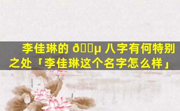 响 🕷 亮悦耳:"李 🦢 "佳 🐦 琳发音清晰音,韵,和谐听起来响亮悦耳。