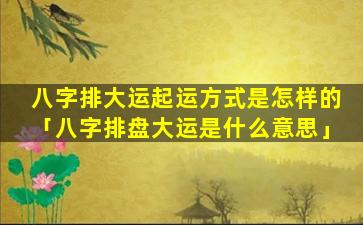 八字排大运是一种预测个人 🌵 命运的方法,通过八字命局来推算出一个人一生中不同阶段的大运流年。起运的方式包括以下步骤: