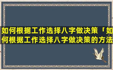 根 🌹 据工作选择八 🦄 字做决策 🌻 的步骤: