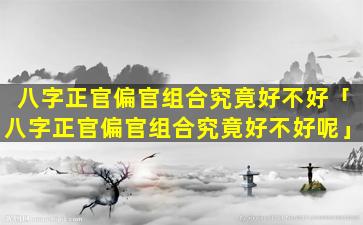 总体来说 🦢 ,八,字中正官偏官的组 🐘 合好不好要看具体情况: