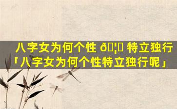 需要注意的是,八,字女个性特立独行也可能受到 🐒 其他八字因素的影响例如命局中其他五 🐝 行、神、煞大运等。