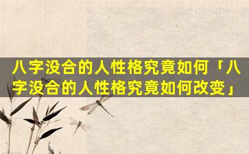 八字学中,合有调和、缓解之意八字。没,合、的,人。性,格 🦉 往往较为独立固执不易受他人影响如果想要改变性格可以从以下几个方面入手: