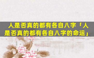 结论:根据科学证据和普遍接受的知识,“人是否真的都有各自八字”这个问题的答案是否定的八字和。其,他。算命形式缺乏科学依据并且不应该被用来预测 🐈 一个人的命 🦄 运或性格