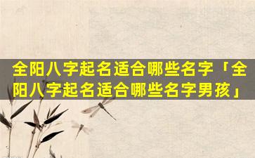 全阳八字适合女 🐅 宝宝起名的 🐠 名字