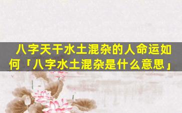 需要注意的是,“八字水土混杂智慧不清”只是一 🦅 个概 🐧 括性的说法。实,际,命理分析中还要考虑其他因素如五行之间的生克制化、日。主强弱等