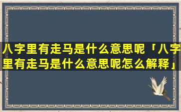 含义:八字中走马的 🐟 含义主 🌿 要有: