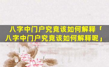 在八字学中,“门户”指的 🐱 是日支日(柱的地支),也“称为日主之妻宫”。它代表着命主配偶的状况、婚。姻关系和家庭环境