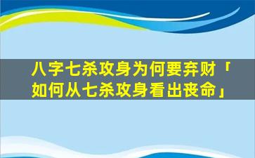 什么 🌵 是“八字七杀 🦢 攻身 🐅 ”