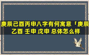 总体来说,庚,辰己酉丙申八字之人性格正直、有,能,力,事,业发展较好财 🌲 运亨通婚姻稳定但需要注意健康问题和言 🌹 行举止 🌳 。