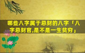 因此 🐅 ,是,否八字忌财官就会一生贫 🐈 穷需要结合以下因素 🐟 综合判断:
