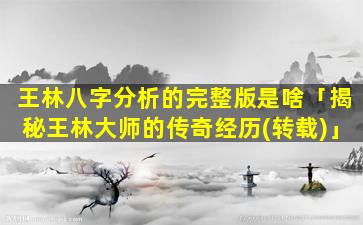 揭秘王林 🌻 大师 🐱 的传奇 🐠 经历