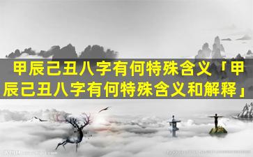 甲辰己丑八字的特殊 🍁 含 ☘ 义: