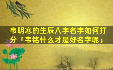 综合评价:韦明寒的姓名格局优良 🕸 ,数,理,吉,利 🐴 五行较为均衡字义寓意深刻整体评分为分80属,于比较好的姓名。