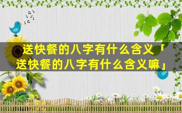 送快餐的八字没 🐝 有特 🦋 定含义八字。又(称四柱命理)是一种 🌼 中国传统的命理学,通。过出生年月日时的柱子来判断个人的运势和性格