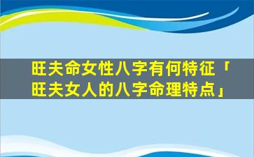 旺夫旺 🕷 子的 🕷 女命八字特点: