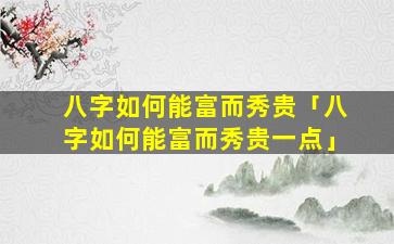 八字 🐠 富而秀 🦊 贵的条件 🐒
