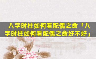 综 🐺 合以上因素 🐯 ,可以判断时柱配偶之命好坏。