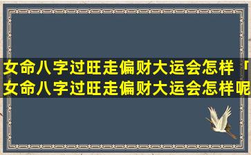 在八字命 💮 理 🦋 学中,女命八字过旺是指八字中五行中的金、水、木、火 🌵 、土,五行的某个或几个元素过于强盛导致八字失衡。而。偏财大运是指大运流年中的偏财星旺盛