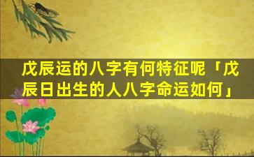 戊 🪴 辰运 🦁 的 🌸 八字特征: