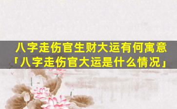 "走"伤官生财 🦍 运是指一个人的八字命理中伤官,星,逢生,旺并且生助 🌹 财星从而带来财运 🐞 提升。