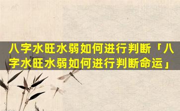 判断八字水旺水 🐕 弱 🦆 的方法 🐯 :