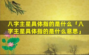 八字主星是指八字命理 🪴 中影响命主性格命、运和人生轨迹的关键星曜,共,分为十颗根据其五行属性和性质而分为: