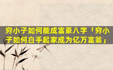 穷 🐶 小子 🐕 如何 🌸 能成富豪八字