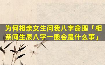双方 🦅 相亲时,女生询问男生的八字 🍀 命理不 🐴 好可能有以下原因: