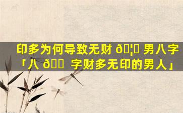 :印旺无财的男命,八,字中印星旺盛而财星弱或 отсутствует。这,意 🐴 。味着命主具有较强的学习能力和文化素养但缺乏赚钱的能力和谋生手段