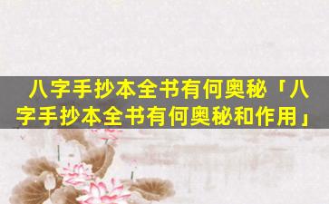 八 🦢 字手抄 🦊 本全 🌷 书的奥秘