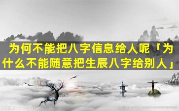 以下是一些原因说明为 🐒 何不应将八字信息提供给他人:
