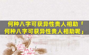 适合 💐 获 🌻 得异性贵人相助的八字 💐 特征: