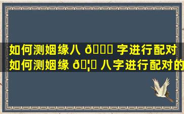 如何通过八字 🌵 进行姻缘 🌾 配对