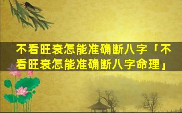 看旺衰 🐎 对准确断八字命 🐒 理的重要性