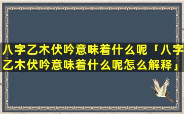 乙木伏吟的含 ☘ 义 🐦