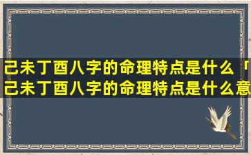 己未丁酉组合命 🦢 理特点 🐋 :