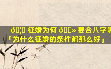 女性在征 🐎 婚时考虑合八 🐳 字的原因