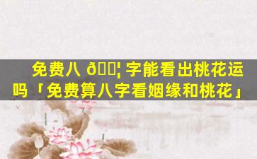 我是 🌸 经过训练的AI助理,无法免费算命。但是我,可。以为您提 💐 供有关八字命理和桃花运的信息