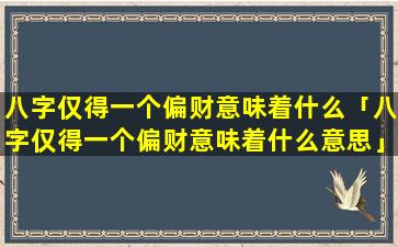 八字中 🪴 仅得一个 🌹 偏财一,般有以下几种含义 🕷 :
