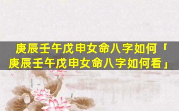庚辰 壬 🦅 午戊申 🌲