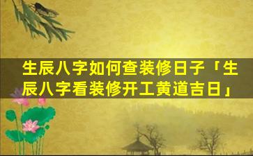 生辰八字看装修 🐶 开工黄道吉日 🐘 方法