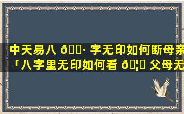 中天易八字 🦢 无印断母亲