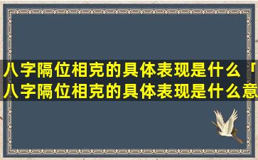 八 🍁 字 🦍 隔位相克的具 🕷 体表现:
