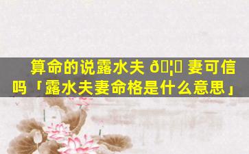 “露水 🐼 夫妻命格”是一种民间的说法,用来形容婚姻不稳定、短命或没有结果的夫妻关系。