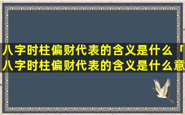 八字时 🐡 柱 🌺 偏财代表的含义: