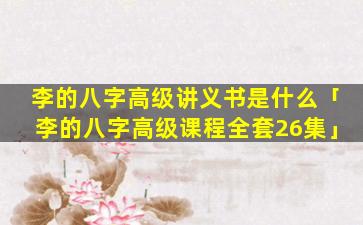 李 🌷 的 🌾 八字高级课程全套 🌺 26 集