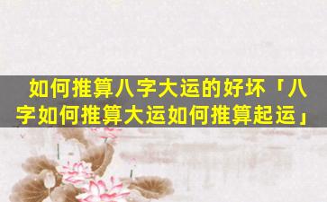 如何推算八字大运 🌹 的 🦟 好坏视频 🌾 教程