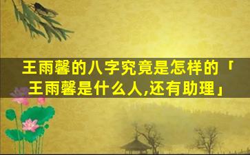 目前无法获得王雨馨的八字信息八字。是一种根 🐋 据出生年月日時推算命理的中国传统命 🕊 理学,属。于,个。人的隐私信息未经本人同意获取或披露他人八字信息是不合适的